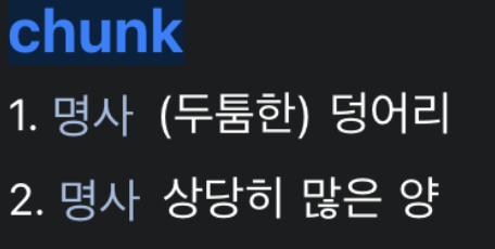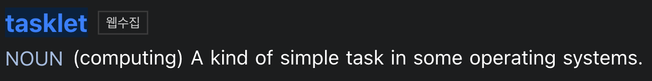 chunk 는 ‘덩어리’ 라는 뜻을 나타냅니다. tasklet 에는 한글 뜻이 없어서 번역해보면 ‘운영체제에서의 간단한 작업’ 라고 해석할 수 있습니다.