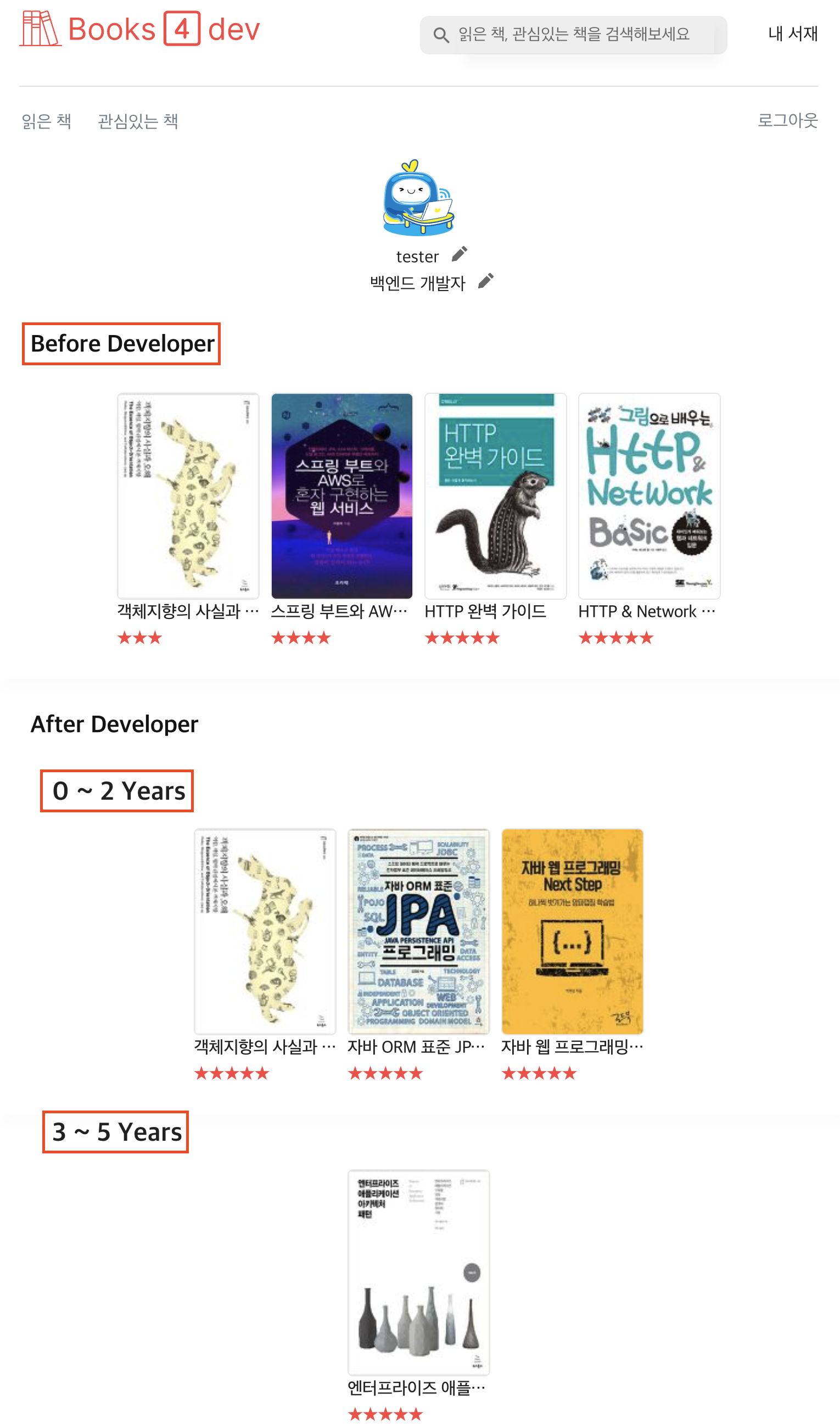 이름 : 위코드 책방 → 개발자의 서재 → Books4dev