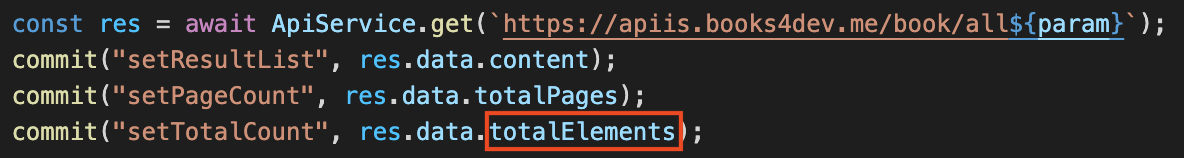 백엔드 응답값에서 토탈 카운트를 저장한다.
